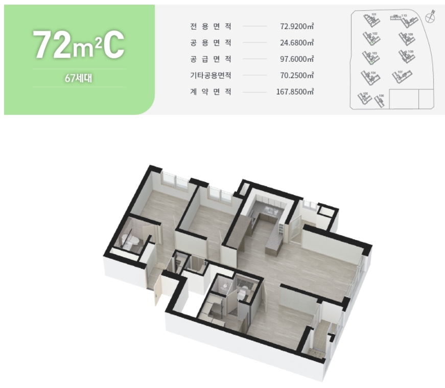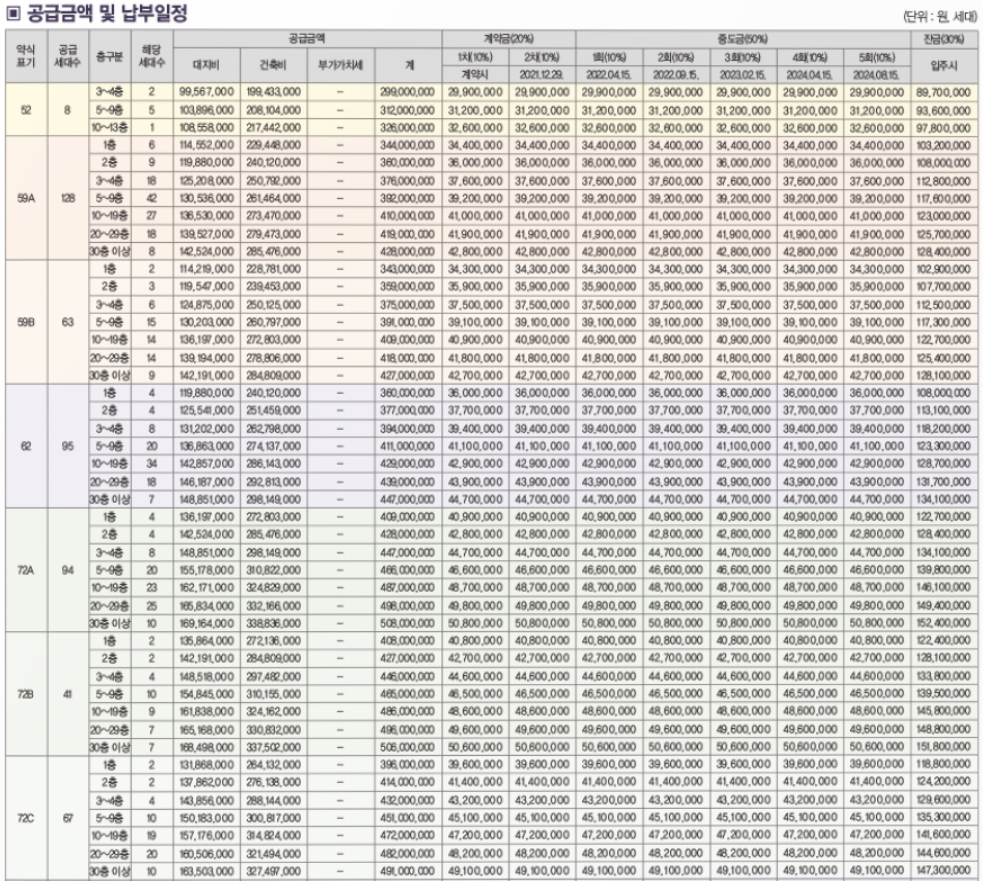 ㅇ 72(A.B.C) 타입 : 분양가 약 4.08억~5.08억