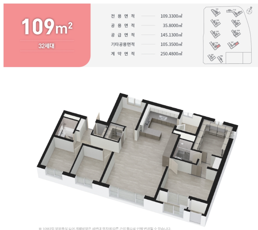 ㅇ 109 타입 : 분양가 약 6억~7.3억