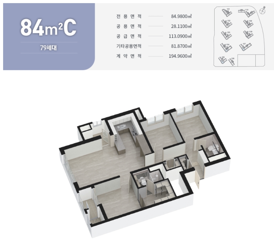 ㅇ 84(A.B.C) 타입 : 분양가 약 4.53억~5.7억