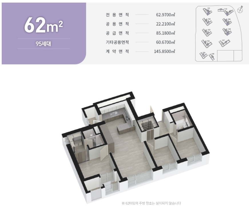 ㅇ 62 타입 : 분양가 약 3.6억~4.47억