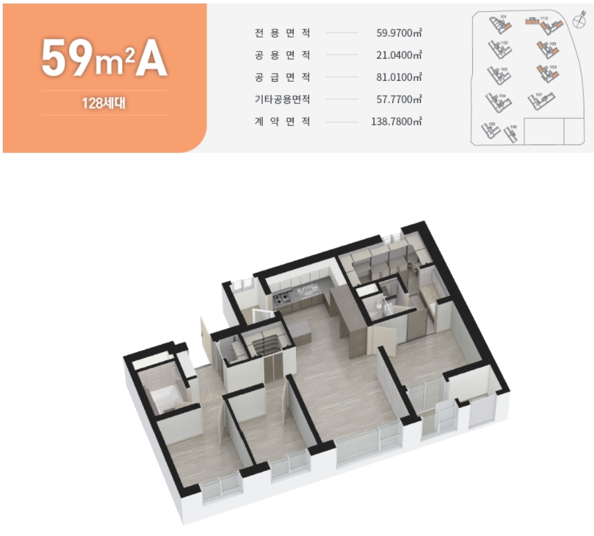 ㅇ 59(A.B) 타입 : 분양가 약 3.43억~4.28억