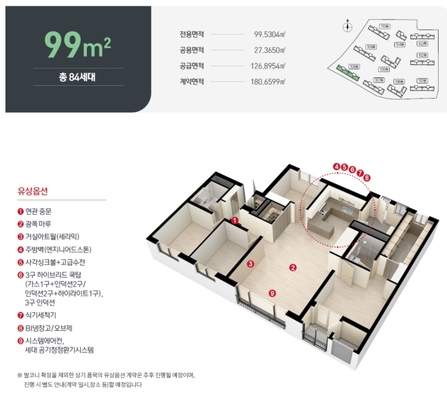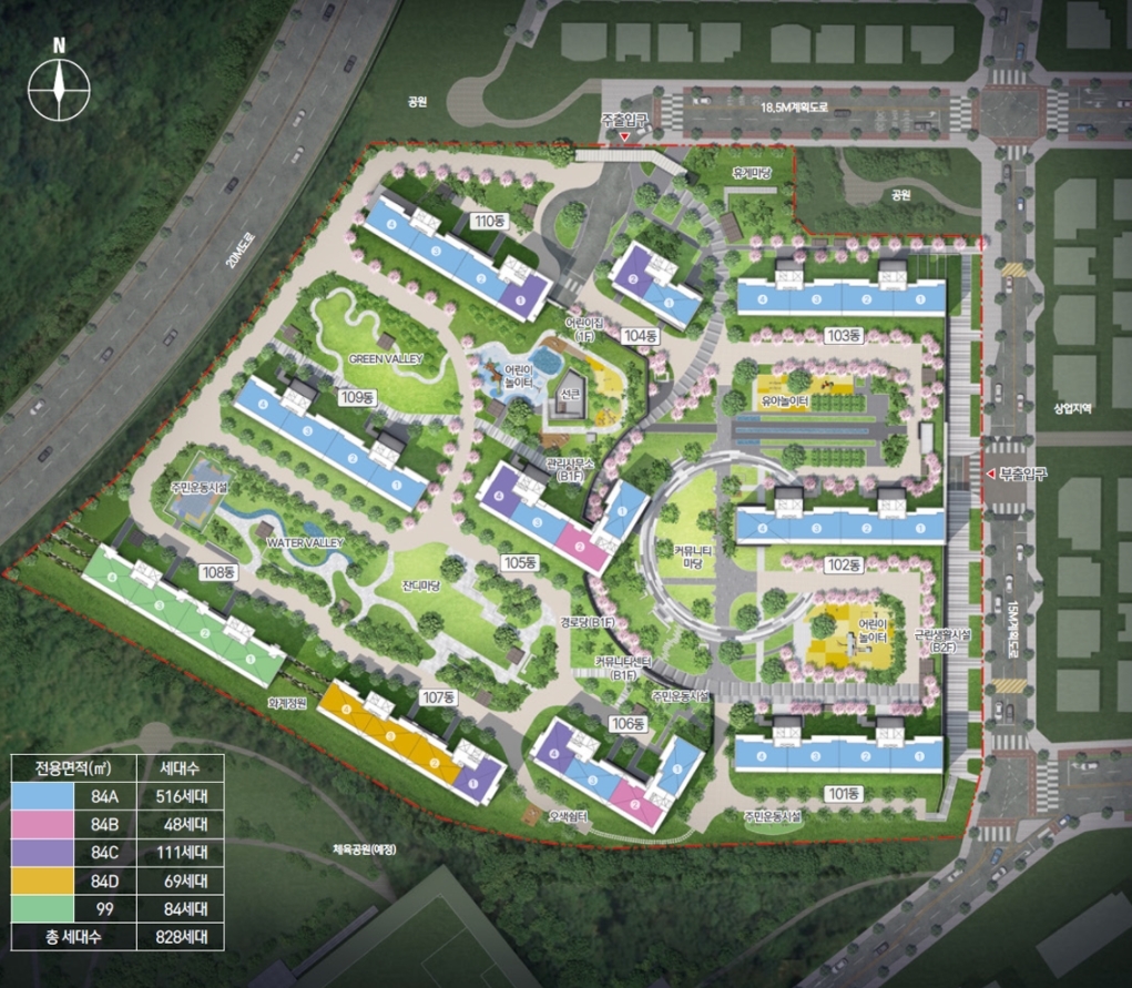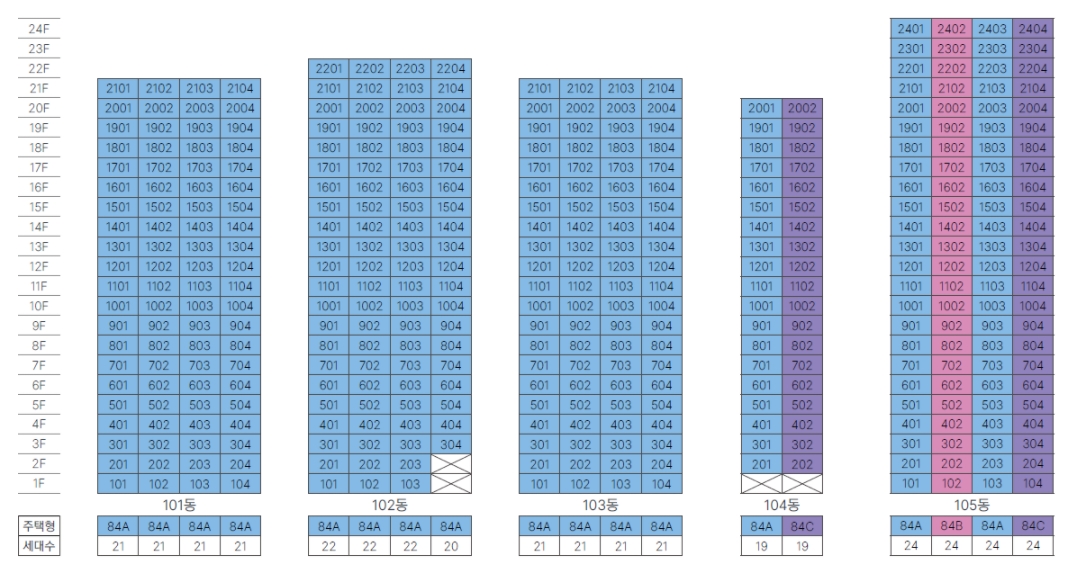 | 84㎡A | 84㎡B | 84㎡C | 84㎡D | 99㎡ | 총 |