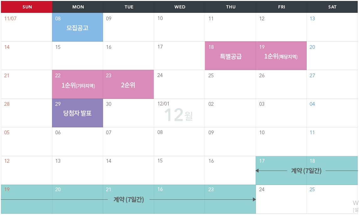 ㅇ 당첨자 지정계약 : 12.17~12.23 (총 7일간)