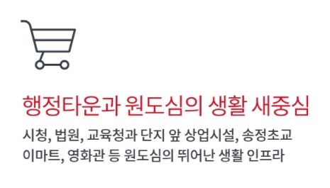ㅇ 행정타운과 원도심의 생활 새 중심 : 시청, 법원, 교육청, 단지 앞 상업시설, 송정초교, 이마트, 영화관