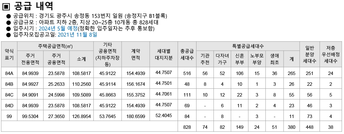 ㅇ 공급 위치 : 경기도 광주시 송정동 153번지 일원