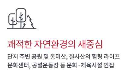ㅇ 자연친화 우수 : 단지 주변, 공원, 통미산, 칠사산, 공설운동장등 문화 체육시설 인접