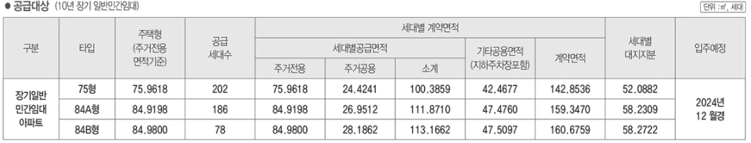 ㅇ 입주시기 : 2024년 12월 예정(추후 변동될 수 있음)