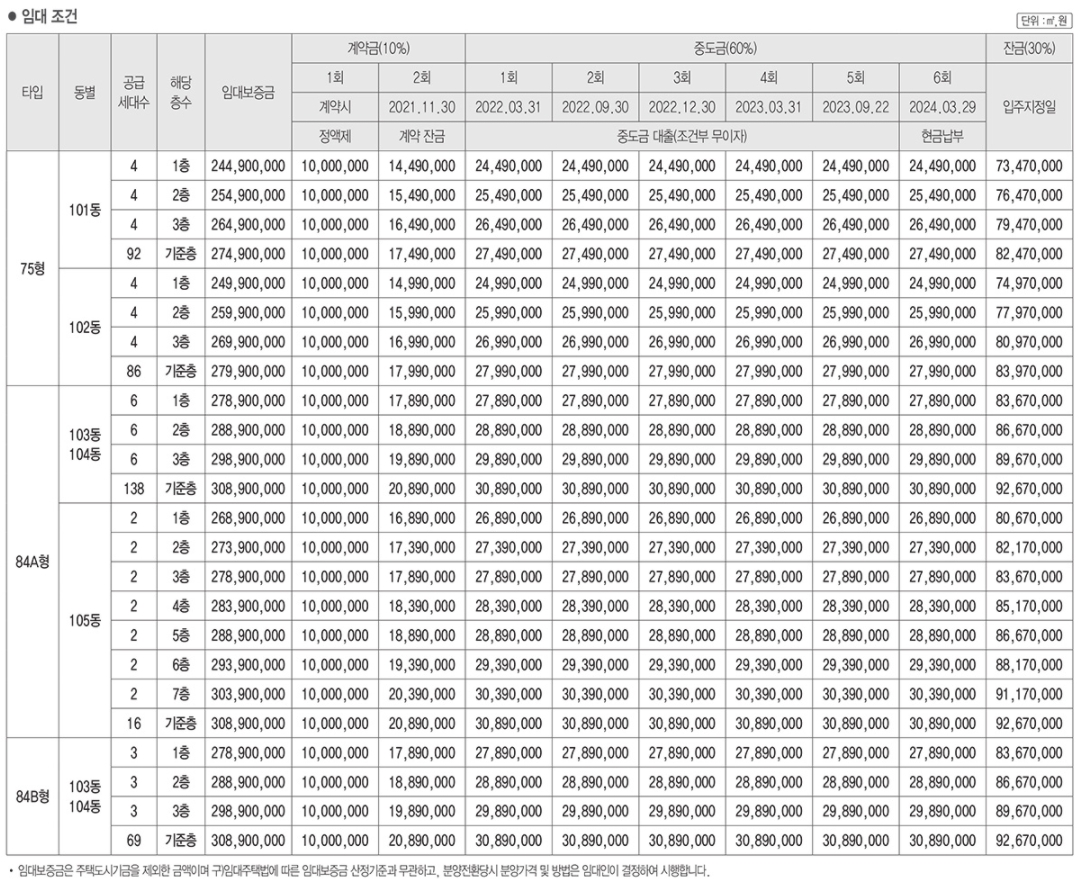 - 84A형 임대보증금 : 2억 7,890만~3억 890만 원