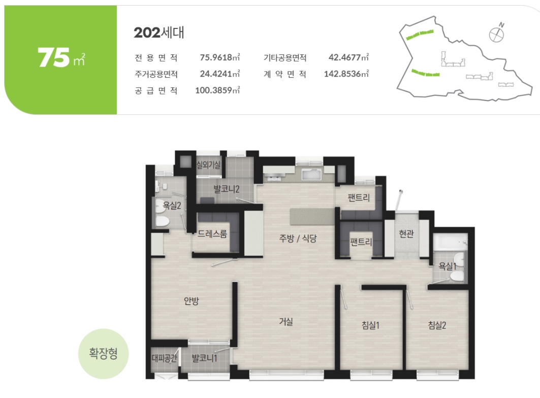 - 75형 임대보증금 : 2억 4,490만~2억 7,900만 원