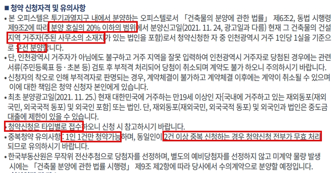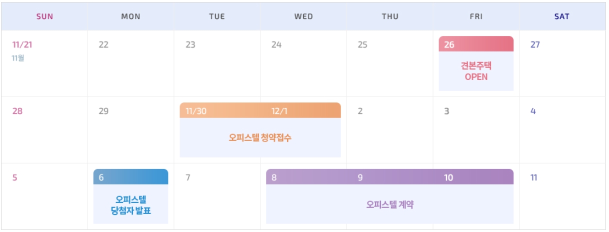 ㅇ 청약접수 : 11.30~12.01일 총 2일간(오피스텔청약)