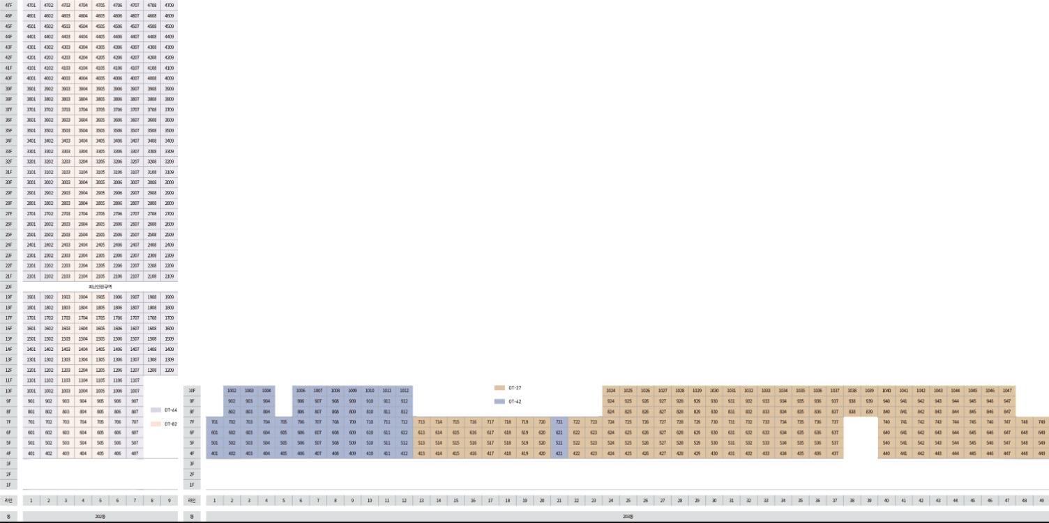 | 27㎡ | 42㎡ | 64㎡ | 82㎡ | 총(오피스텔) |