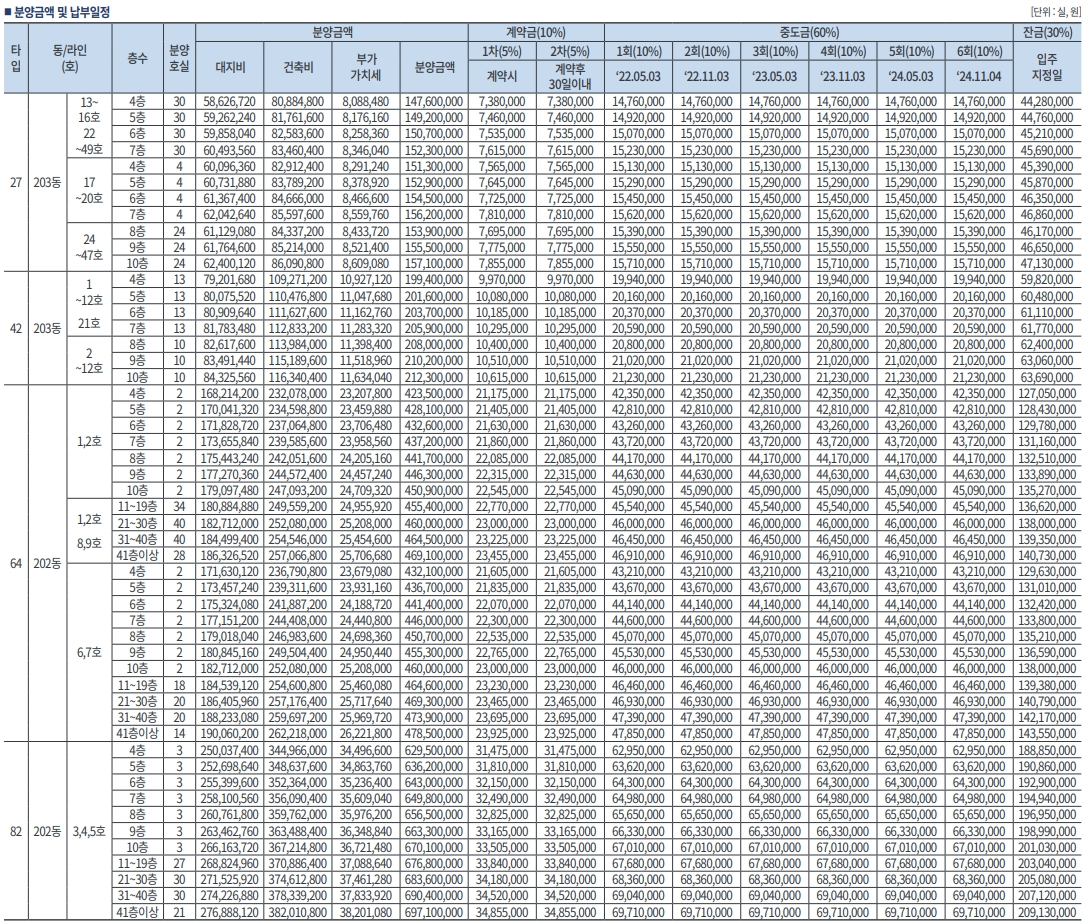 - 82 타입 분양가 : 6억 2,950~6억 9,710만 원