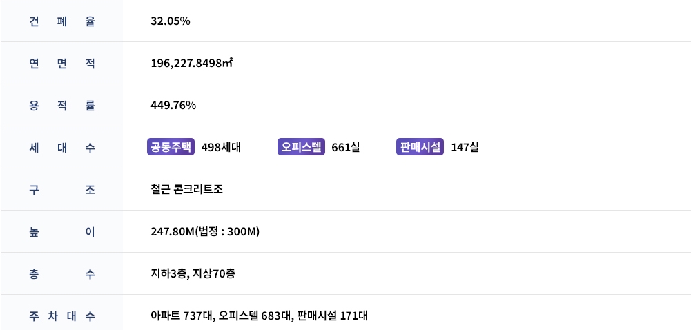 ㅇ 공급규모 : 지하 3층, 지상 70층