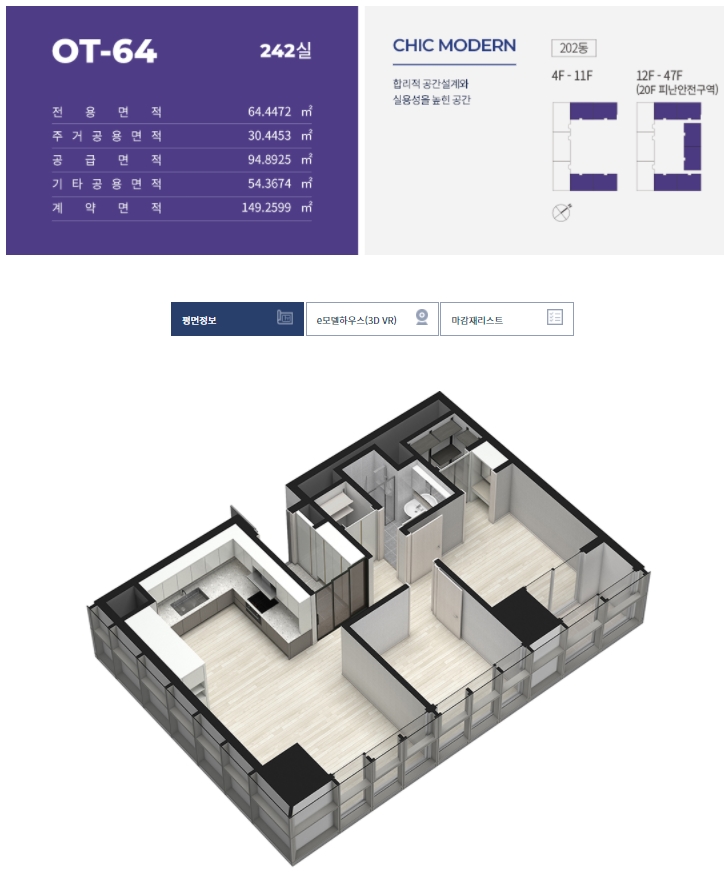 - 64 타입 분양가 : 4억 2,350~4억 7,850만 원