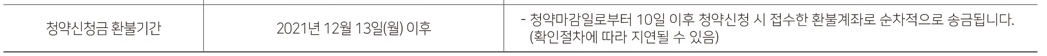 ㅇ 청약신청금 환불 : 2021, 12.13(월)이후, 청약 마감일로부터 10일 이후 순차 환불