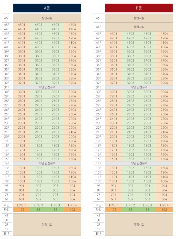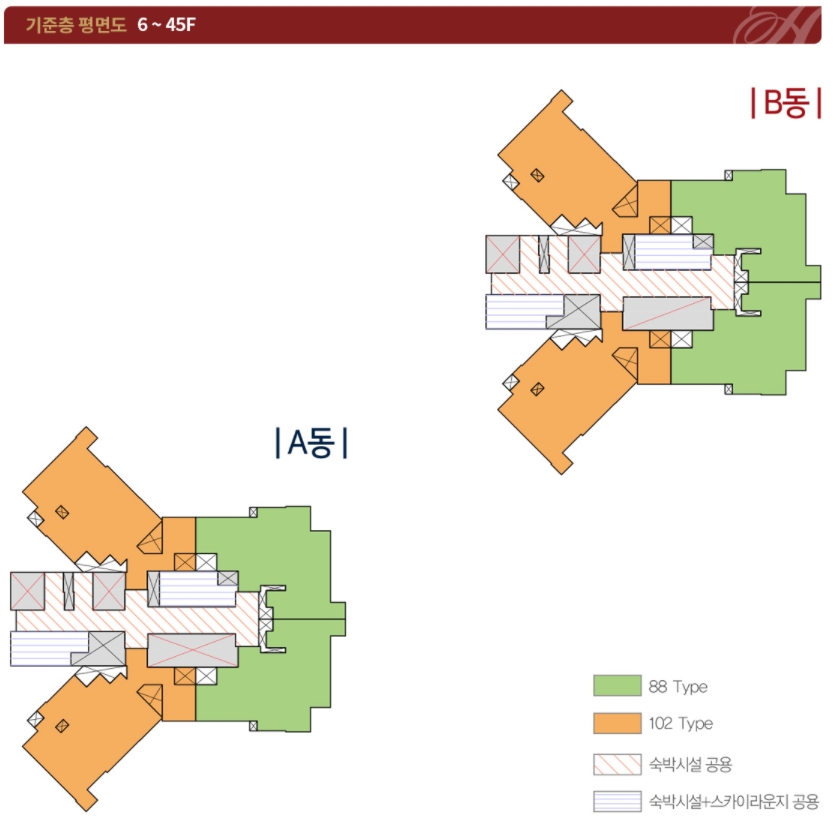 | 88㎡ | 102㎡ | 총(생활숙박시설) |