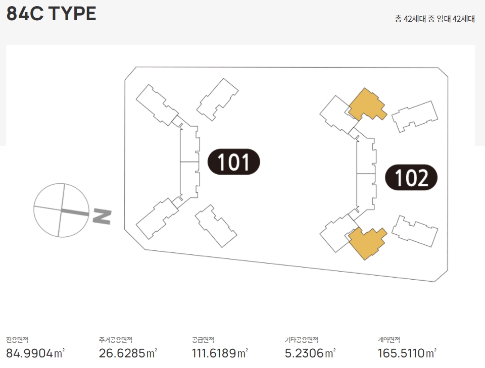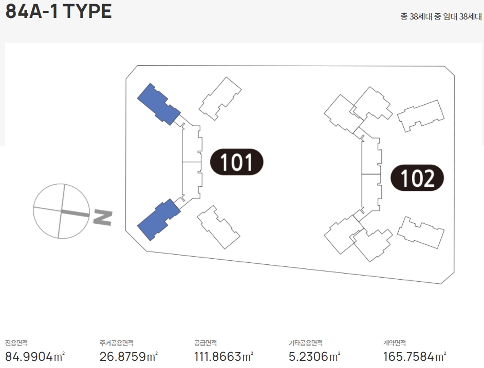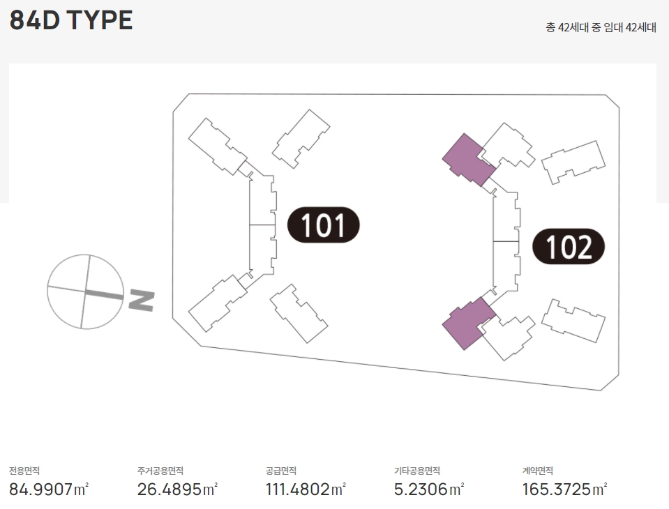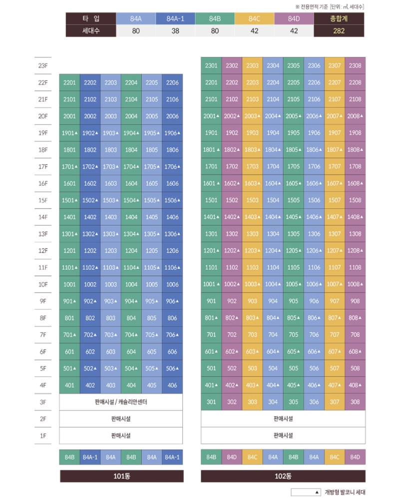 | 84㎡A | 84㎡A-1 | 84㎡B | 74㎡C | 84㎡D | 총 |