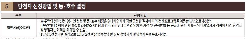 ㅇ 당첨자 선정 / 동호수 결정 : 전산프로그램을 통한 100% 추첨 적용