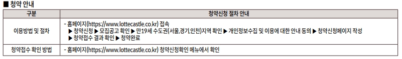 ㅇ 청약은 인터넷 온라인 청약신청이며 롯데캐슬 홈페이지(https://www.lottecastle.co.kr/)에서 접수