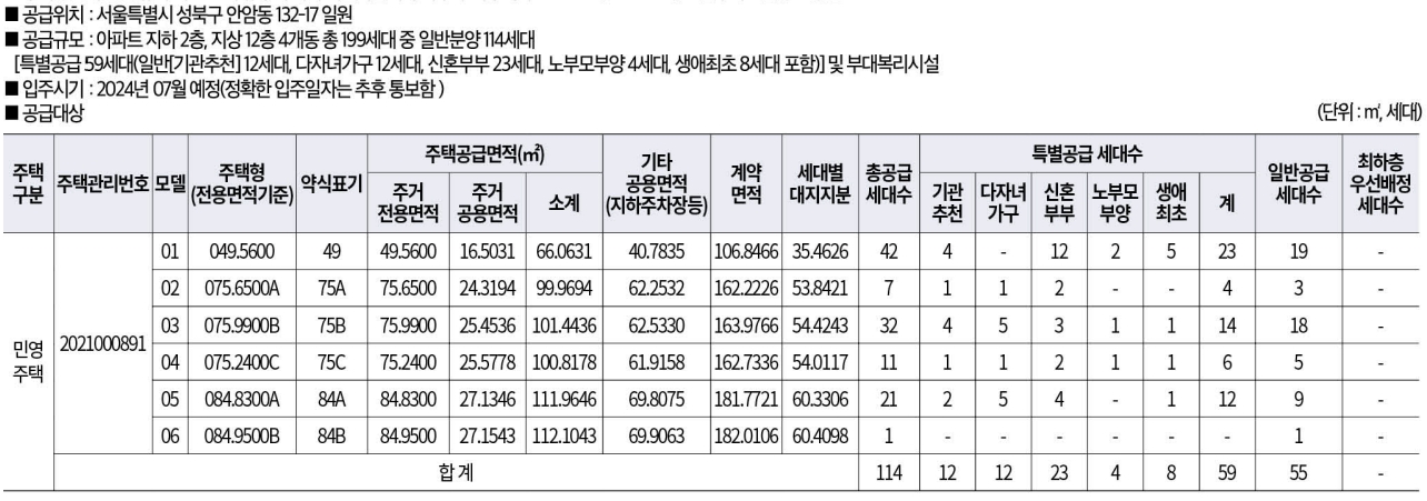 ** 결론 : 특별공급세대수가 일반공급보다 많습니다. 특별공급을 잘 노리시면 좋을 단지로 보입니다^^