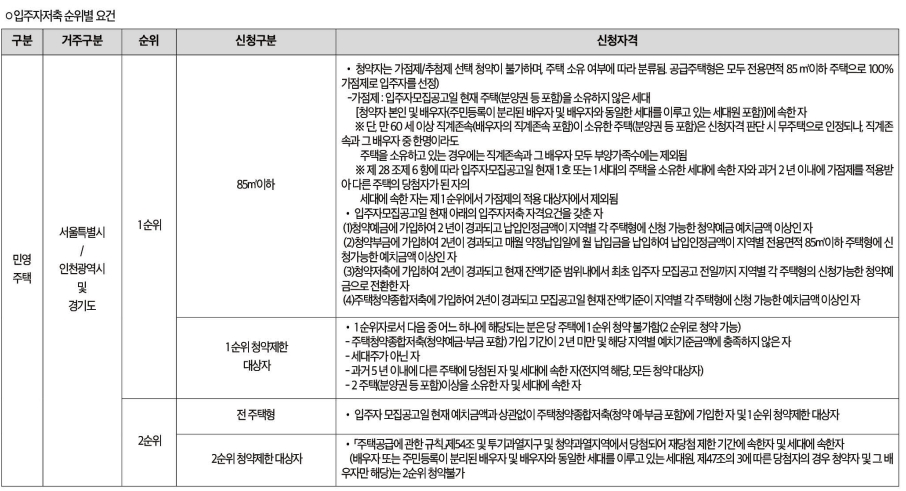 | 순위 | 주택형 | 청약관련 신청자격 | 거주구분 |