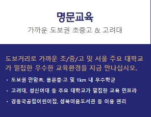 ㅇ 학군 : 도보 가능한 초중고와 서울 주요 대학교 밀접(안암초, 용문중/고, 고려대등)