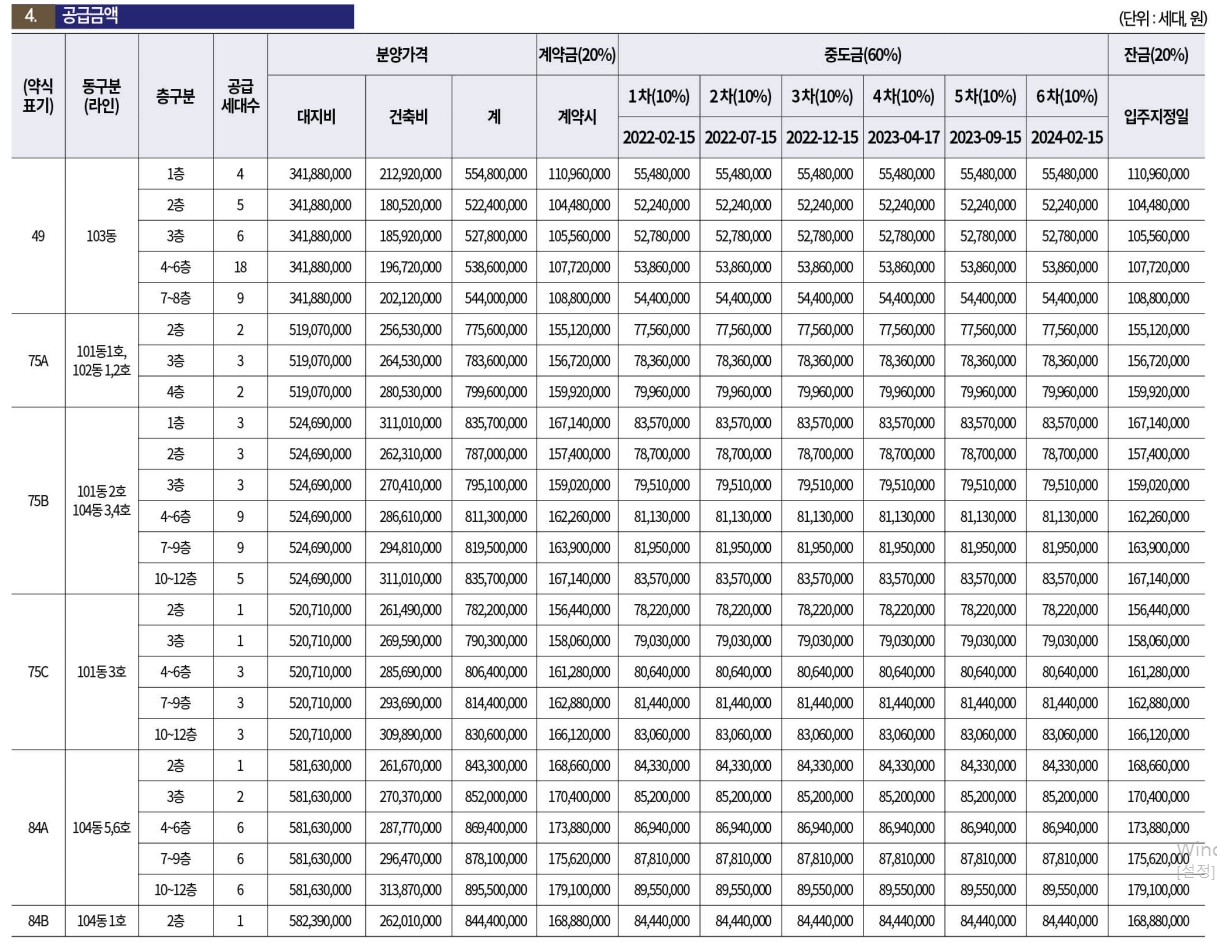 ㅇ 75B 타입 : 분양가 약 7.87억~8.36억