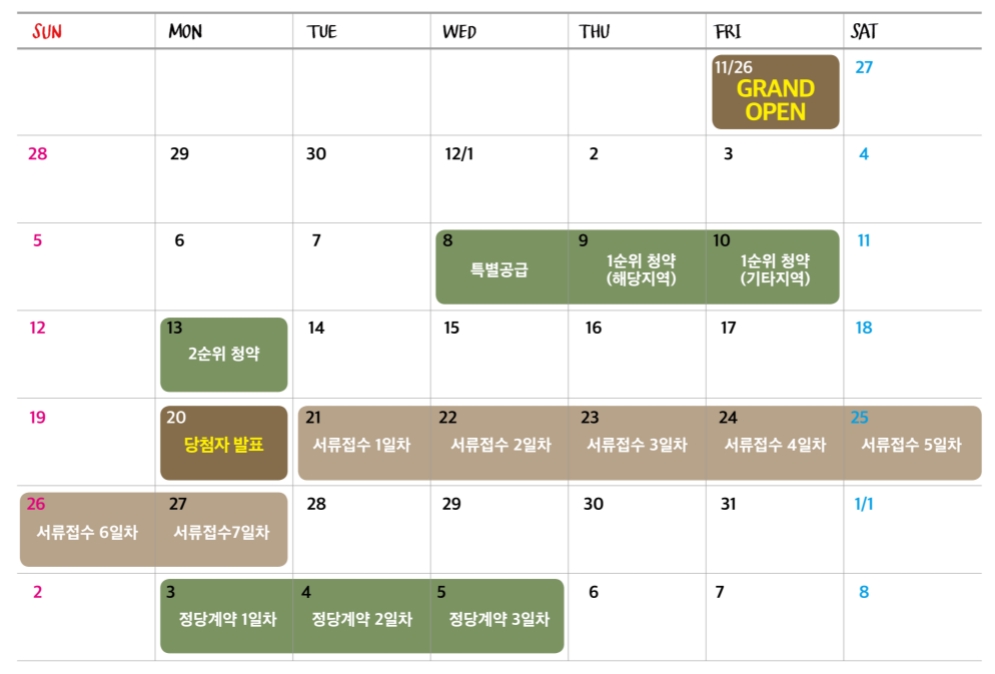 - 12.08일 특별공금, 12.09일 1순위(해당), 12.10일 1순위(기타), 12.13일 2순위 청약