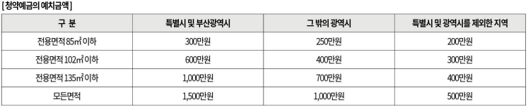 - 해당 전용면적(구간별) 예치금액