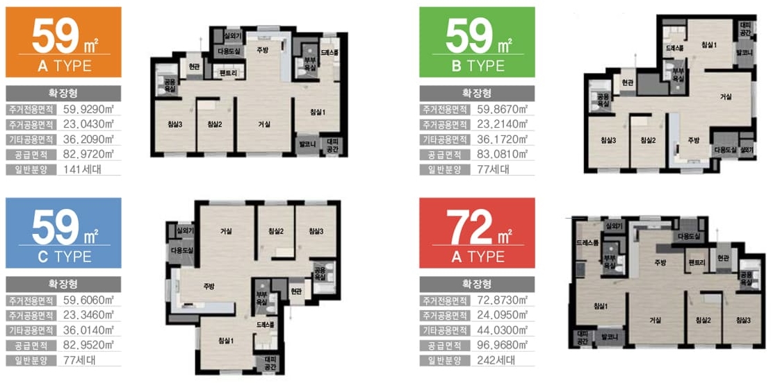 ㅇ 59B 타입 : 분양가 약 4.64억~4.98억