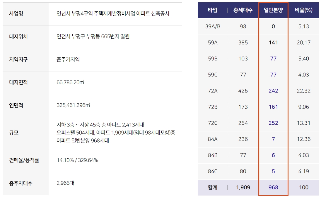 ㅇ 공급 위치 : 인천시 부평구 부평동 665번지 일원