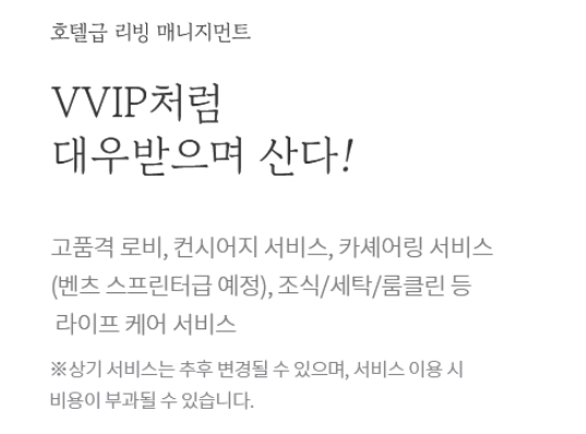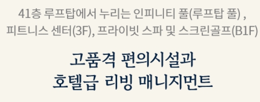 ㅇ 호텔급 편의시설 : 루프탑 인피니티 풀, 피트니트 센터, 프라이빗 스파, 스크린골프 등 호텔급 리빙 매니지먼트